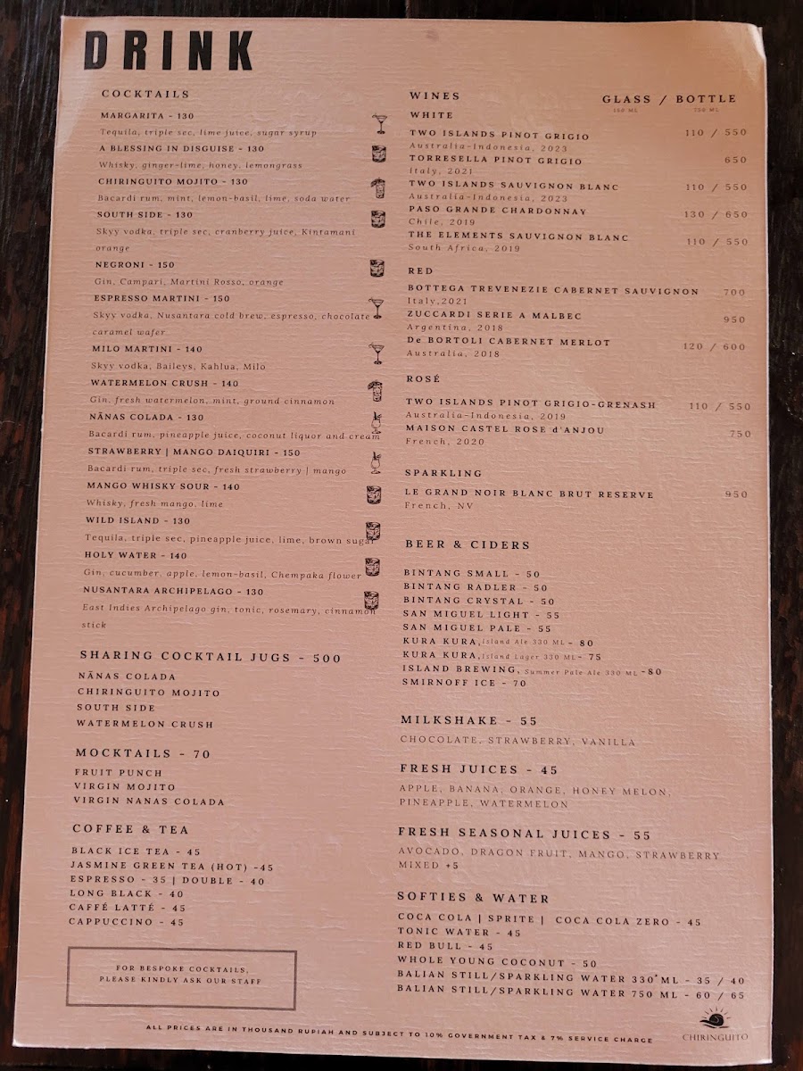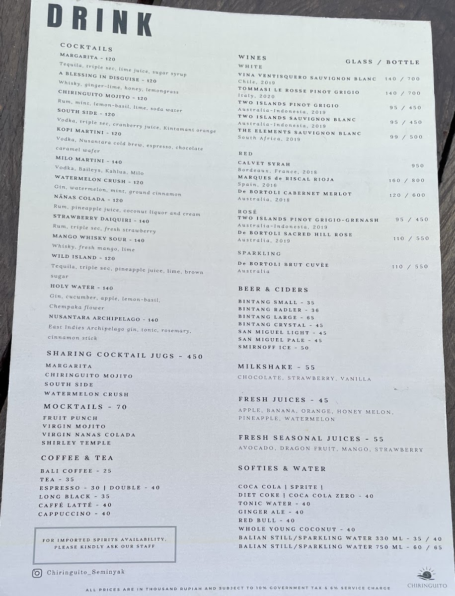 Chiri Bali, located on Jl. Camplung Tanduk in Seminyak, Indonesia, offers a vibrant dining experience with stunning beach views, particularly at sunset. Renowned for its laid-back yet stylish atmosphere, the venue serves a delectable array of share plates and offers exceptional service that elevates every visit. Guests appreciate the attentive staff, who go above and beyond to ensure comfort and satisfaction. While opinions on the food vary, many highlight the quality of ingredients and the unique flavor combinations. Whether you're savoring seared tuna or indulging in shisha, Chiri Bali promises a memorable experience that captures the essence of Balinese dining.